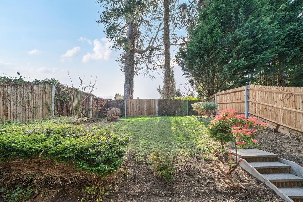 - Charming rear garden with patio and raised lawn with shrub borders