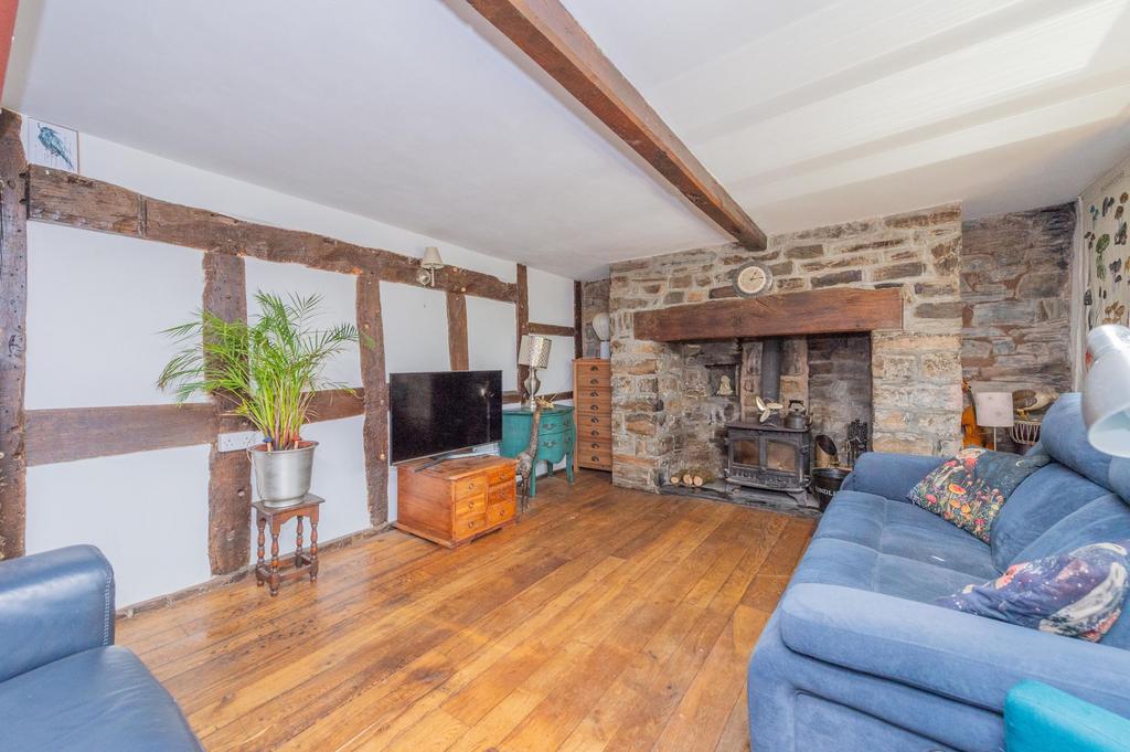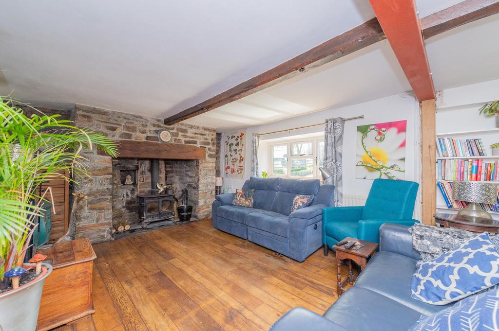 Nestled as the first welcoming structure upon entering the estate, the charming owner's cottage, a quintessential white stone residence, offers a comfortable & characterful retreat. The ground floor features an inviting hallway leading to a practical shower room. Adjacent lies the spacious country-style kitchen, the heart of the home, boasting cream timber cabinetry, a Rangemaster stove, exposed stone walls whispering tales of the past, & original timber beams adding rustic charm. A glazed door provides direct access to the private rear garden, while steps ascend to the generously sized living & dining room. This characterful space showcases exposed stone on opposing walls and two inglenook fireplaces, one with a working log burner for cosy evenings. Upstairs, three comfortable double bedrooms and a well-appointed family bathroom, complete with a jacuzzi bath and separate shower, provide ample private space. This delightful cottage offers a tranquil haven within the bustling estate.