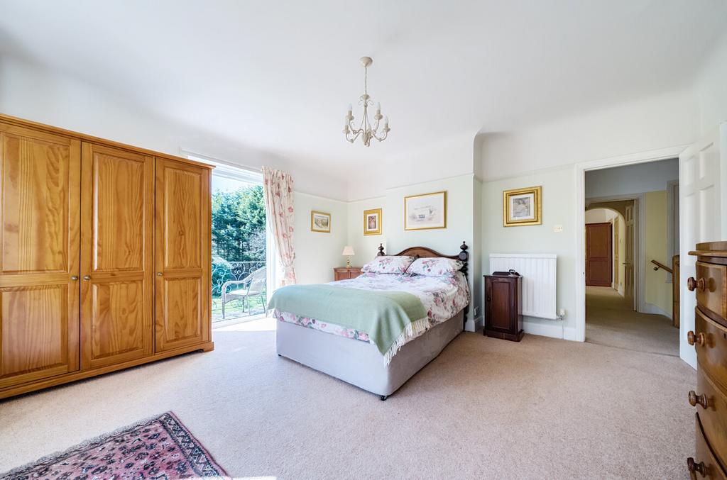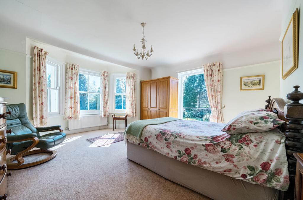 On the first floor, a central landing area leads to an impressive, triple aspect principal bedroom suite with separate dressing room, en-suite bathroom and double doors opening onto a private balcony overlooking the grounds. Bedrooms two and three enjoy bay sash windows that form part of the elegant façade, with bedroom two also benefitting from double doors opening out onto a private south facing balcony. There is one further double bedroom to this level as well as a large, family shower room.