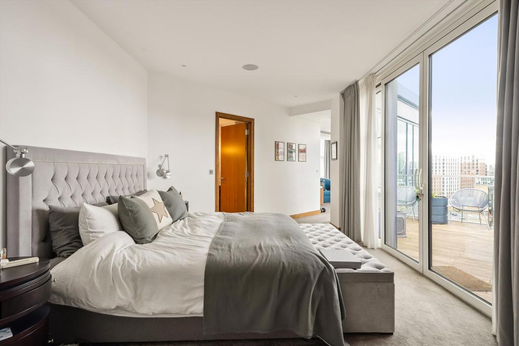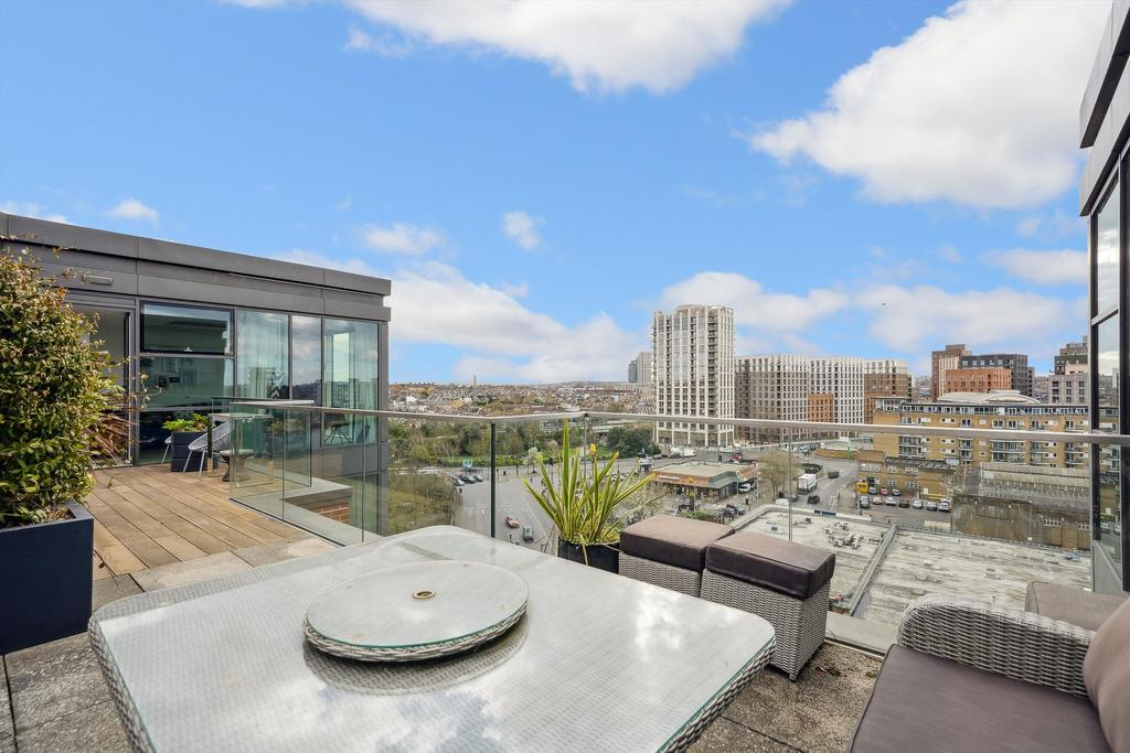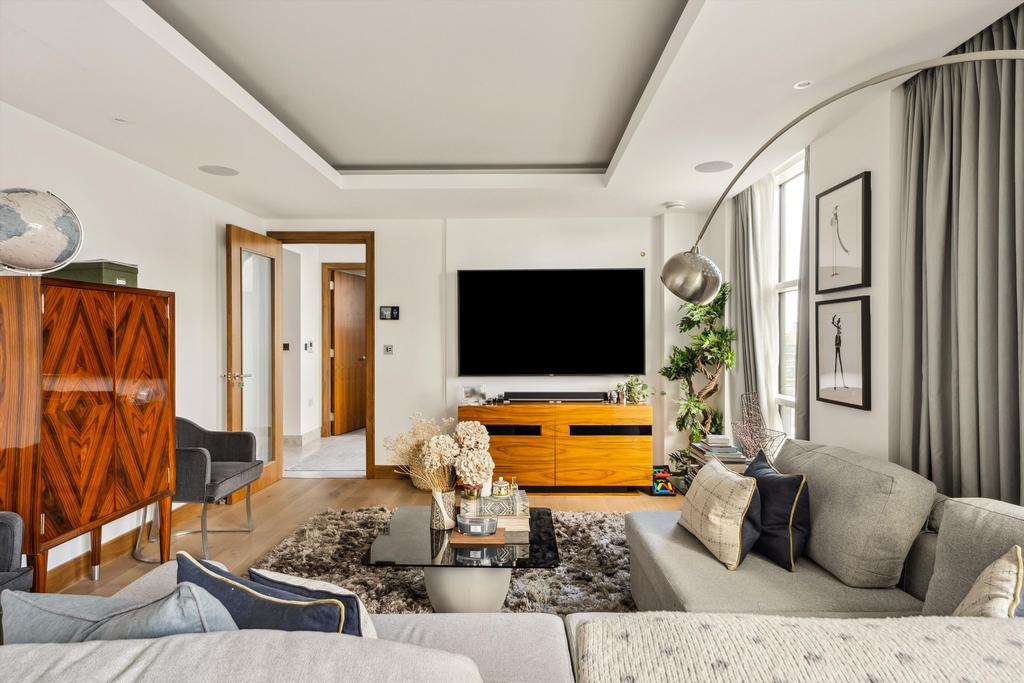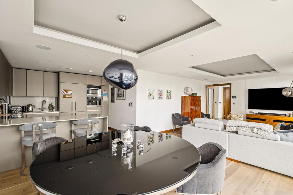 This superb penthouse, spanning an impressive 2,299 square feet, occupies the top two floors of a contemporary residential development in the sought-after Battersea Reach. It boasts an ideal blend of sophisticated living and expansive outdoor entertaining spaces.