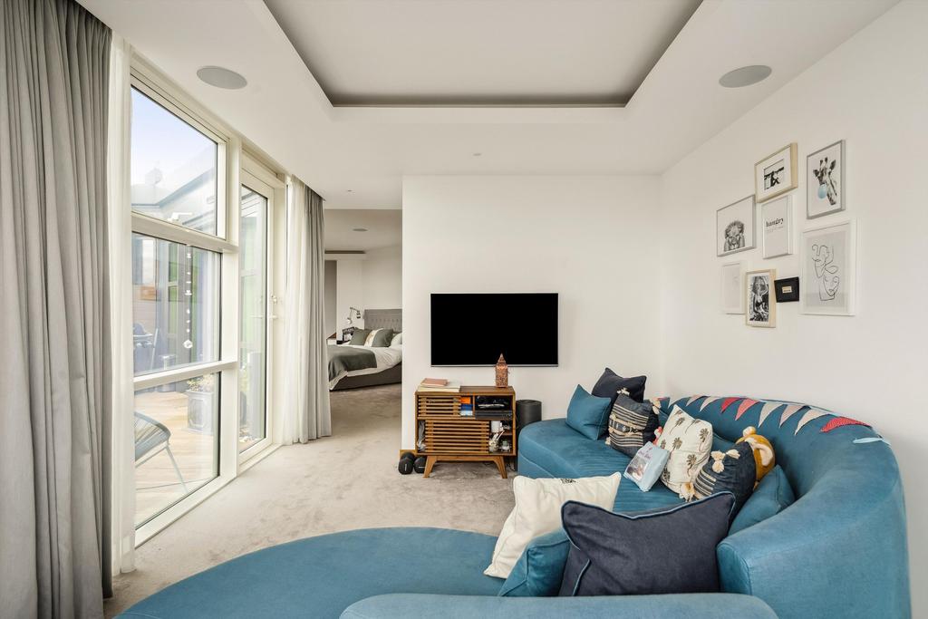 Upstairs, the property continues to impress with a spacious double bedroom, complete with its own ensuite bathroom and private roof terrace. The exceptional principal suite is a true standout, offering a serene sleeping area that flows into a cosy snug, a generous walk-in wardrobe, and a luxurious bathroom. Completing this space is a remarkable 37-foot roof terrace, providing sweeping westerly views of the River Thames — the perfect spot to unwind and enjoy stunning sunsets.