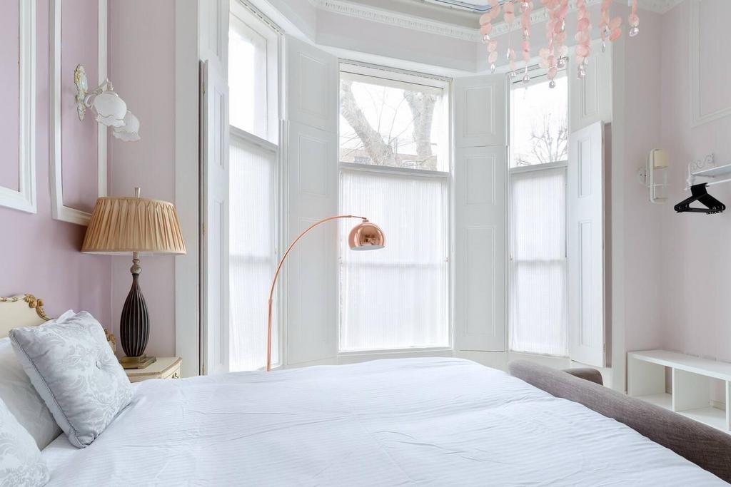 The living room and master bedroom feature large windows and high ceilings, providing tonnes of natural light to the flat. The windows feature silk curtains and wooden shutters.