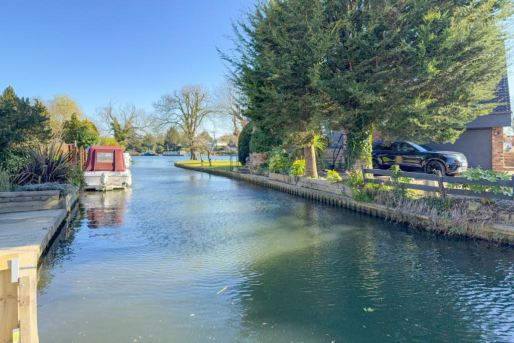 Enjoy idyllic riverside living in this superb detached four-bedroom home in Wraysbury, complete with some 15 m (50 ft) direct river frontage and private mooring. Securely positioned behind electric gates with a double integral garage and extensive driveway parking for numerous vehicles. This family home offers well-planned living space. The first floor comprises four bedrooms, including the principal bedroom with an en suite and dressing area, and a family bathroom. The ground floor is designed for modern living with a large open-plan lounge leading out to the riverside terrace and opening to the dining room, further study/reception, contemporary fitted kitchen, practical utility room and cloakroom. Set on a generous plot with the south-westerly-facing riverside garden being a true highlight with its raised terrace that leads to the lawned area and mooring. Energy Rating: D