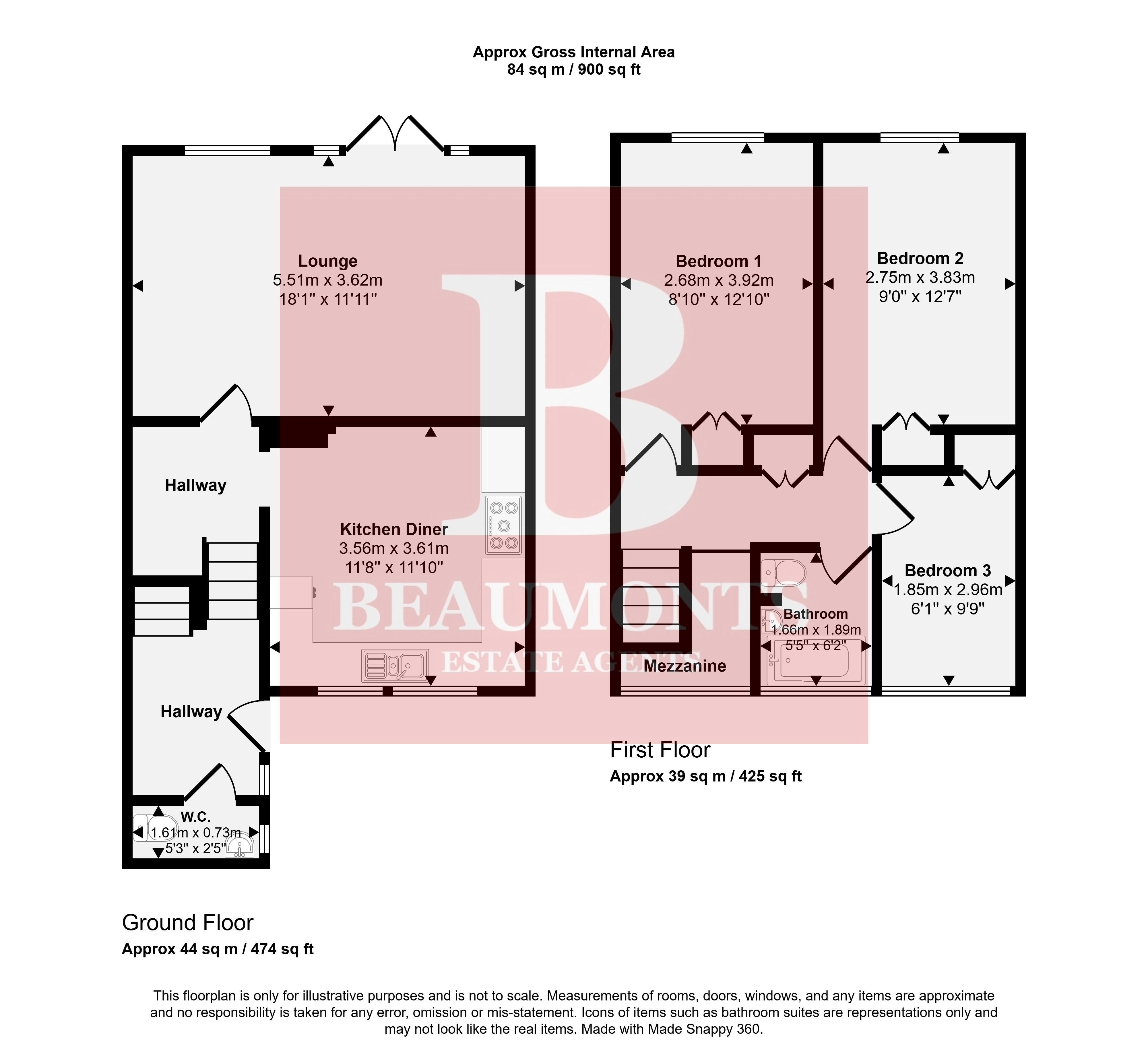FIRST FLOOR: Three Bedrooms * Family Bathroom