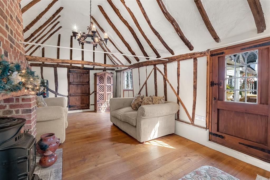 Vaulted Sitting Room - Windows to the front and side aspects, part-glazed door to the outside space and feature redbrick fireplace.