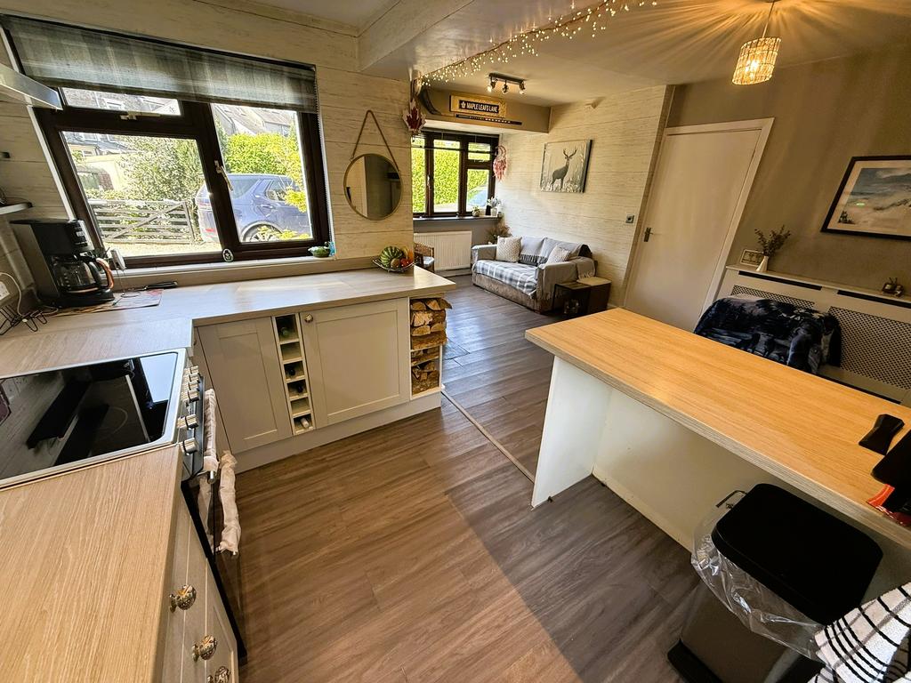 To the ground floor there is a modern open plan Kitchen and Dining area – with multifuel stove, conservatory, ground floor bedroom with adjoining shower area and a separate Living Room. To the first floor, there are two further double bedrooms and family Bathroom.