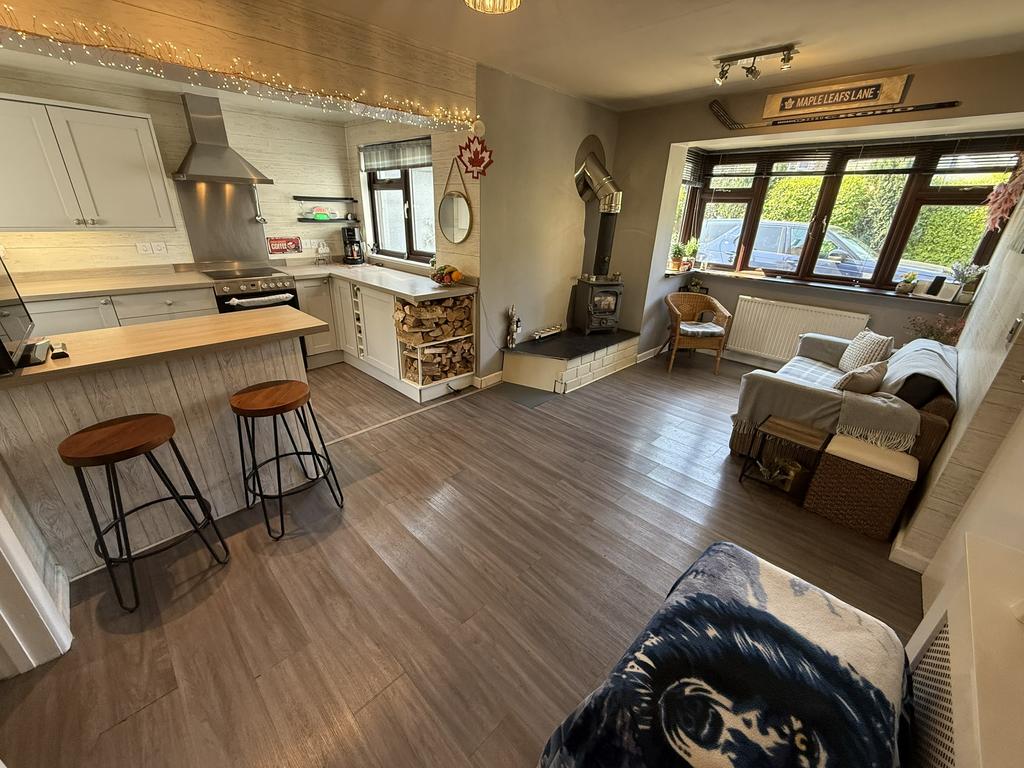 Double-glazed square bay window to front, rouble radiator, multifuel “Charnwood” stove set on a slate hearth, double radiator, alcove suitable for large American fridge/freezer and opening to: