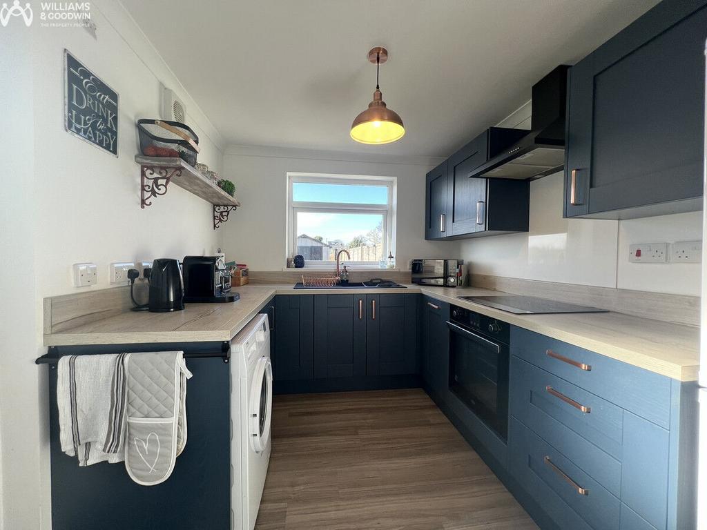Fitted with a matching range of base and eye level units with worktop space over, sink, plumbing for washing machine, space for fridge/freezer, built in oven. Window to rear. Electric radiator
