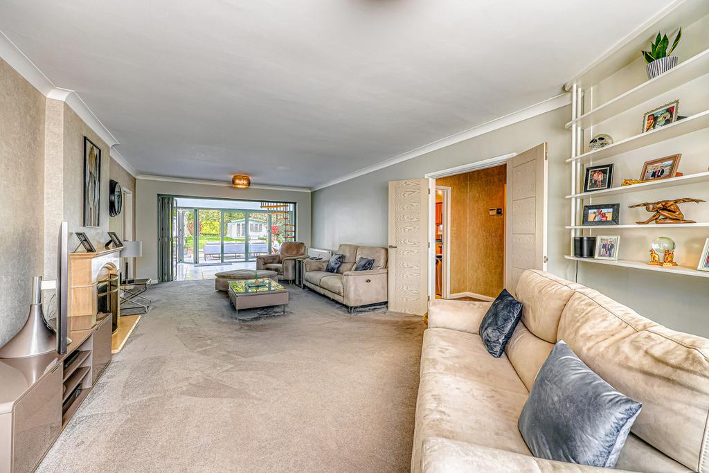Double glazed window to the front aspect, with carpeted flooring, power points, TV point, and radiators. A feature gas fireplace adds warmth and character, while double glazed bi-fold doors open to the family area, creating a seamless flow.
