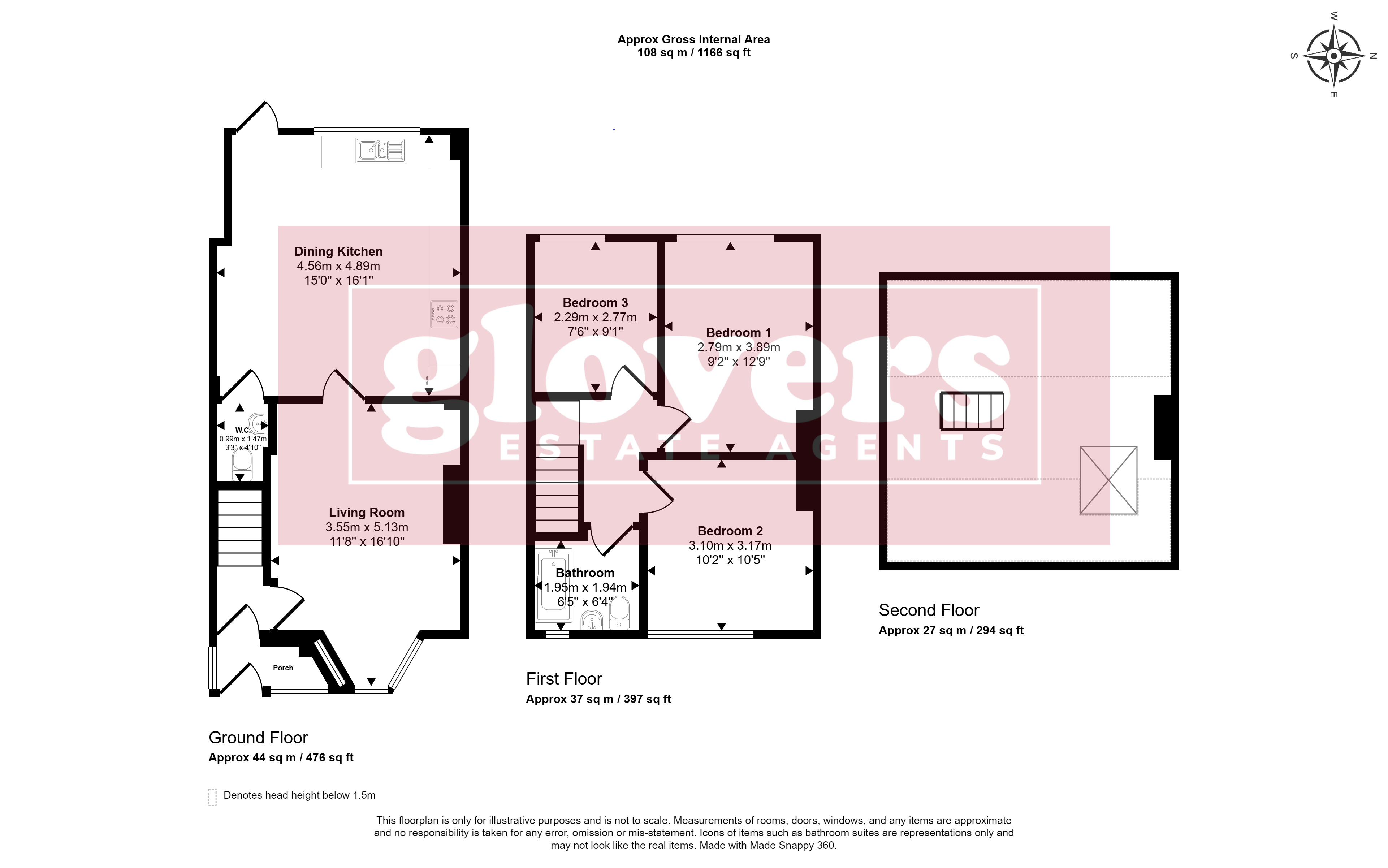 DOWNSTAIRS W/C - 4' 10'' max x 3' 3'' max (1.47m x 0.99m)