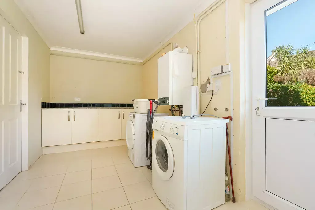 Upon entering, a welcoming entrance porch leads to a handy cloakroom (WC) and into the heart of the home. The generous L-shaped living/dining room provides a comfortable and flexible space for relaxing or entertaining. The separate kitchen is complemented by a utility room and offers integral access to the garage/store, adding to the property's practicality.