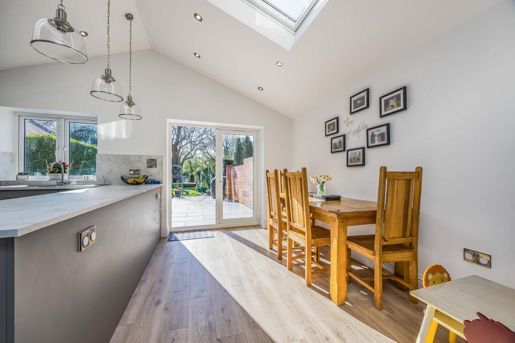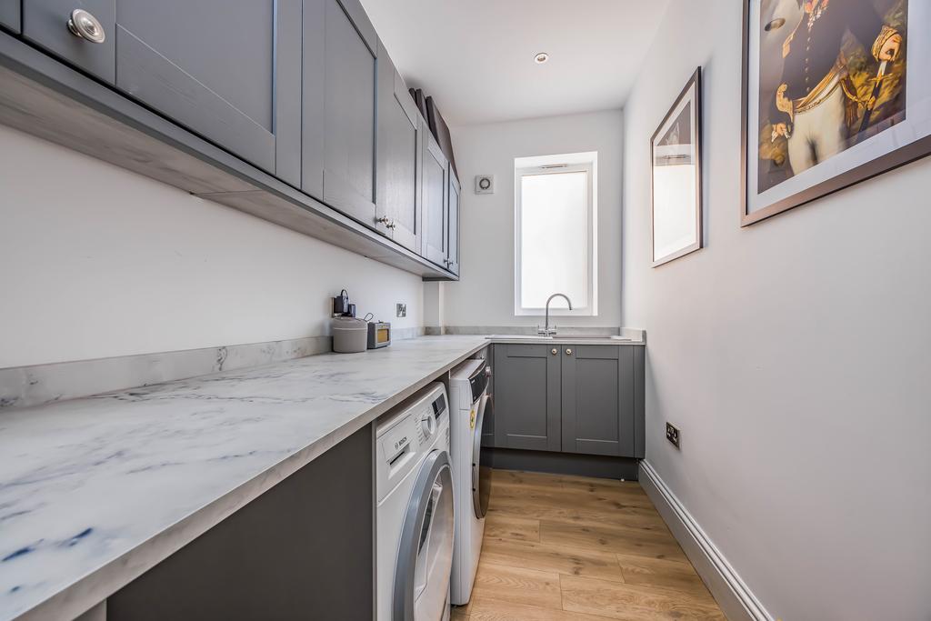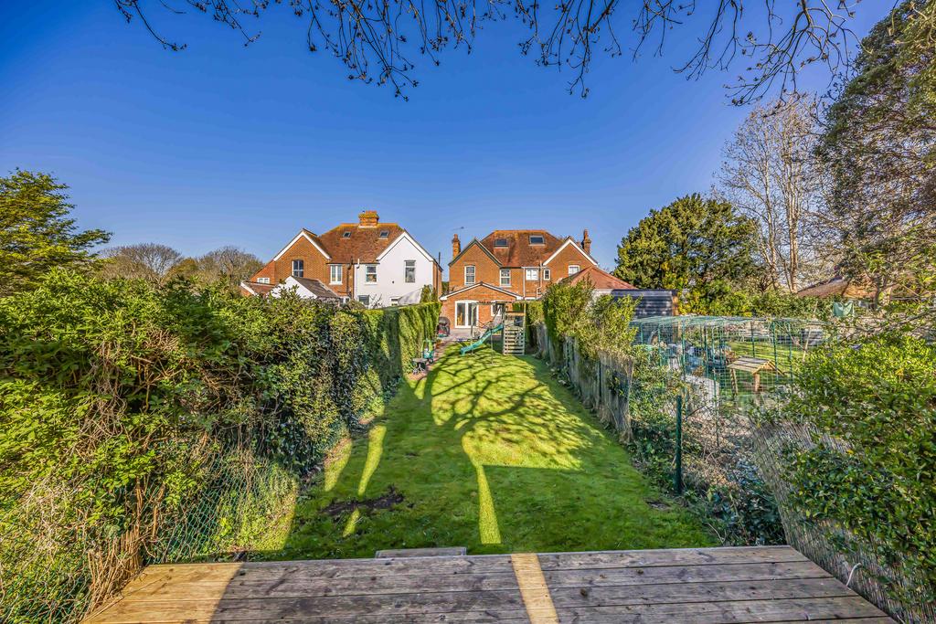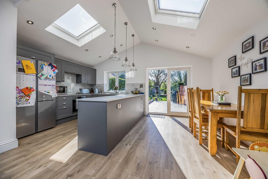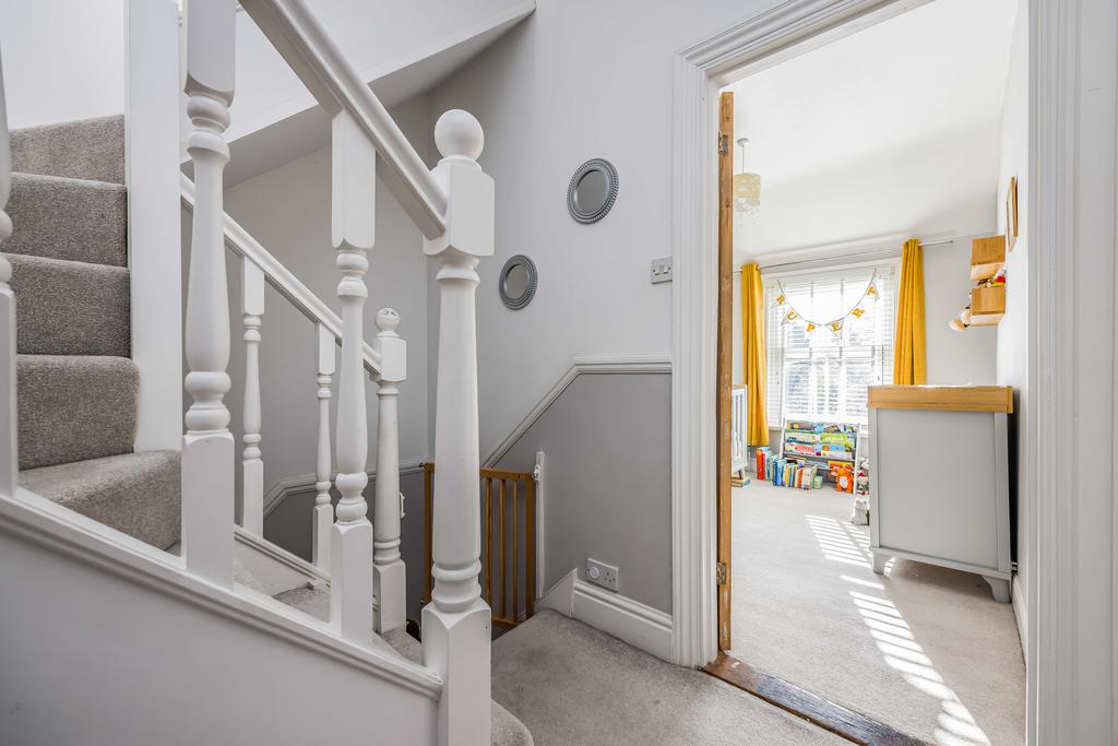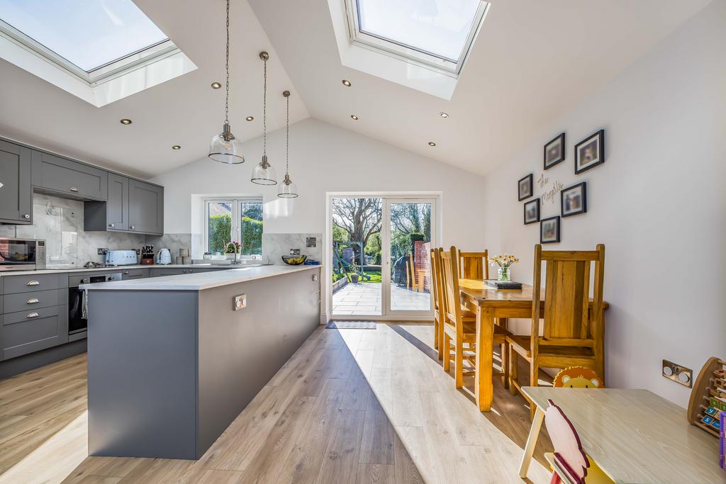 Waterways is a superbly presented handsome Edwardian semi-detached house cleverly extended in recent years, whilst retaining much of its original character with well proportioned rooms with tall ceilings and a bright atmosphere throughout. Upon entering the house there is a welcoming reception hall with stairs to the first floor and integrated storage cupboards below and a cloakroom/wc. The front sitting room has a wide bay window and a fireplace with a wood burning stove. There is a large utility room with a range of wall and base units, worktops and sink unit and plumbing for appliances. A door from the hall leads into the impressive well appointed kitchen/dining/family room with a partly vaulted ceiling and there is a comprehensive range of wall and base units with extensive worktop area, oven, hob sink unit, integrated dishwasher and space for a large American style fridge/freezer, open plan to the family sitting room which features a period style log during stove and the dining room area overlooks the rear garden with patio doors leading out to the extensive paved sun terrace. From the entrance hall stairs rise to the landing with doors leading to the principal bedroom, which has lovely views over the rear garden. There are two further double bedrooms and a superb modern bathroom. A further staircase leads to the second floor loft room, ideal studio with space for a double bed and hatchway door to loft storage area.