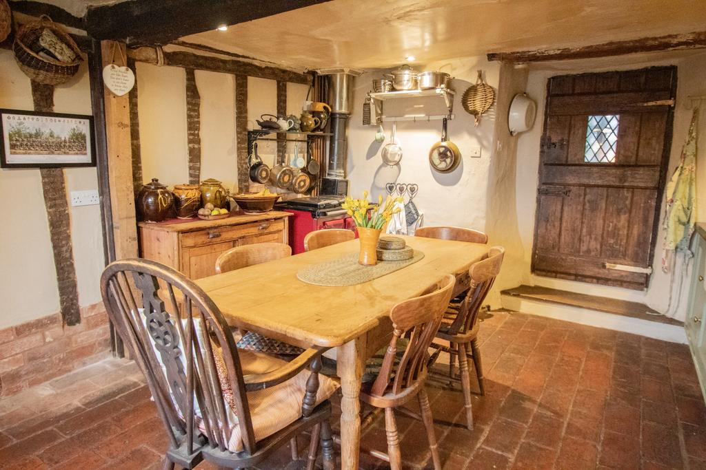 On the first floor there is a master bedroom and three further bedrooms and a family bathroom. Throughout the property there are original doors, exposed ceiling beams and deep window sills.