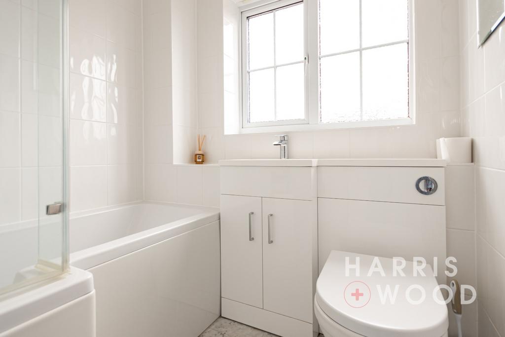 Double glazed window to rear, low level WC, wash hand basin, bath with shower over, radiator