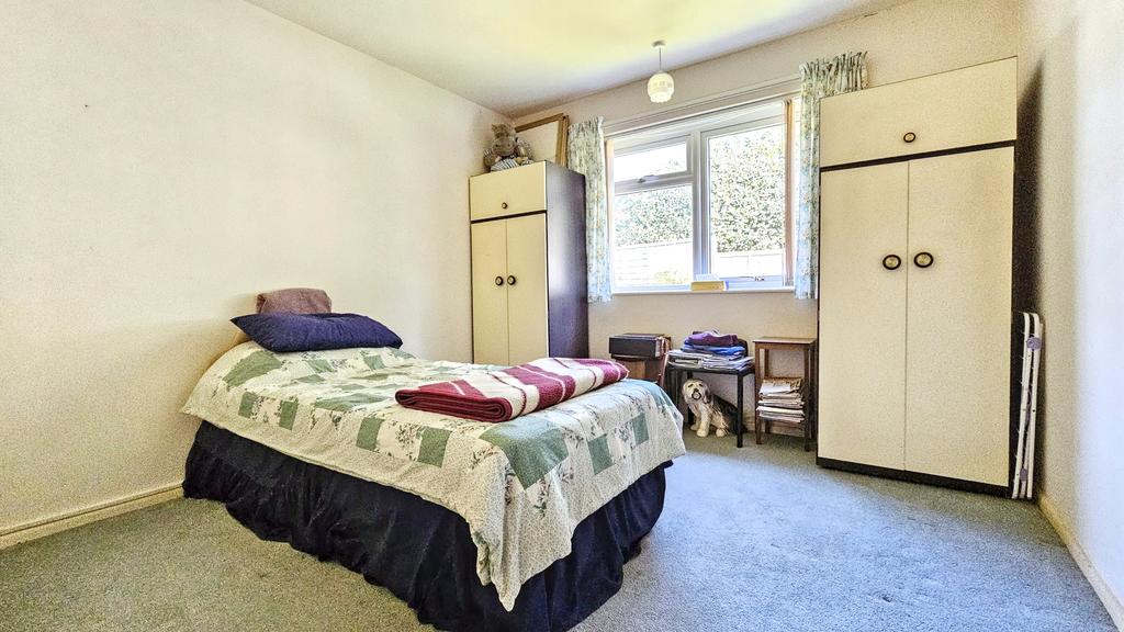 The bungalow is fronted with a good size lawn area with shrubs, and a large part tarmac and gravelled driveway providing parking for several vehicles.