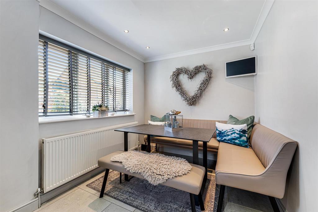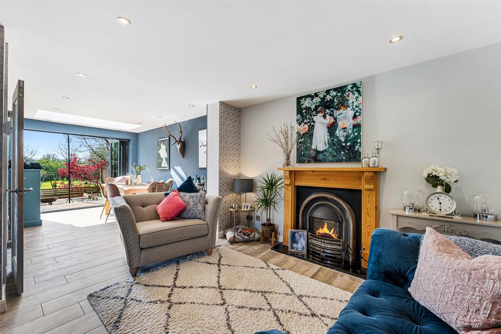 On the ground floor is a large entrance hall with seating area, breakfast kitchen with shaker style units and integrated appliances, open living/dining room with feature fireplace and bi-folds opening onto the rear patio, family room/study, utility room and downstairs cloakroom WC. Both the family room and the living room have underfloor heating.
