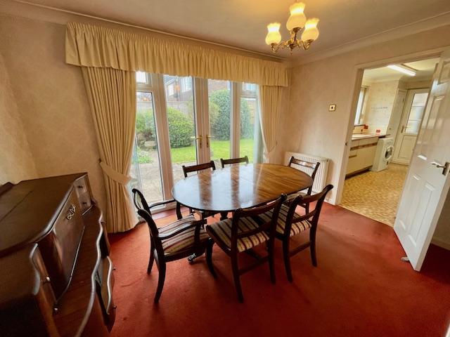 Dining Room 11’ 4” x 8’ 3” Having double glazed UPVC framed French doors into the rear garden. Central heating radiator. Coving. Door into the: