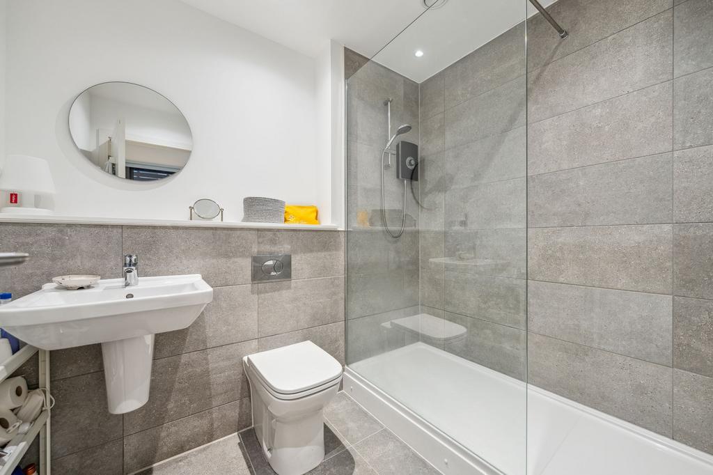 The property boasts two generously proportioned double bedrooms, each with integrated wardrobes, while the principal bedroom is further enhanced by a luxurious en-suite shower room, finished to an impeccable standard by Porcelanosa. A stylish main bathroom – also by Porcelanosa – completes the accommodation, featuring a modern three-piece suite with a shower over bath.