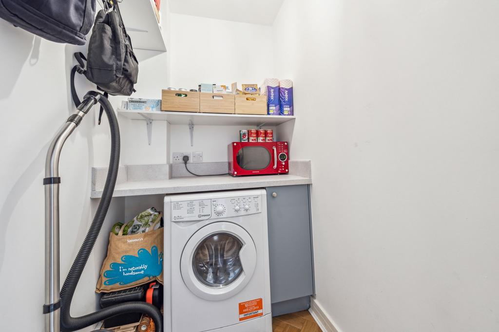 A separate utility room off the hall provides excellent additional storage and houses space for both a washing machine and tumble dryer – ideal for practical, everyday living.