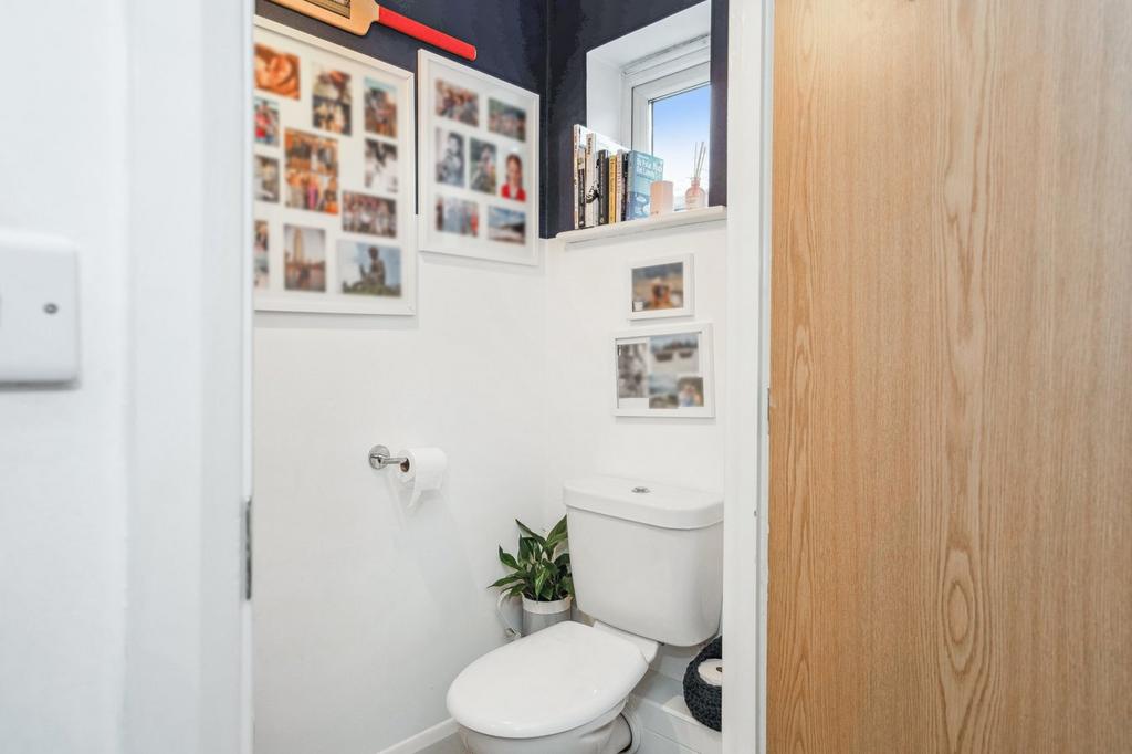Internally and on the ground floor, is a kitchen which received a tasteful makeover in 2014 featuring a gas hob and built-in dishwasher. Heading to the rear of the property reveals an open-plan living and dining area, bathed in natural light. Double doors connect this inviting space to the garden, effortlessly bringing the outdoors in.