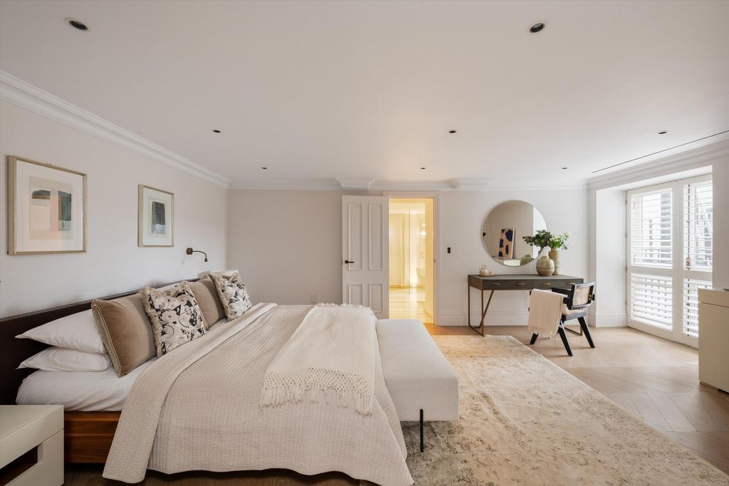 Beautifully refurbished two bedroom luxury apartment with a large balcony. Finished to an exceptional standard with parquet flooring, high-quality fixtures and furnishings and spread over two buidlings, this elegant apartment combines Victorian features with contemporary design and comfort. The spacious accommodation comprises two large double bedrooms, one on a mezzanine level with a generous walk-in closet and a gorgeous en suite bathroom featuring his and hers sinks, a free-standing bath and a walk-in shower. The second bedroom leads off the hallway and benefits from a large wardrobe and stylish en suite shower room.