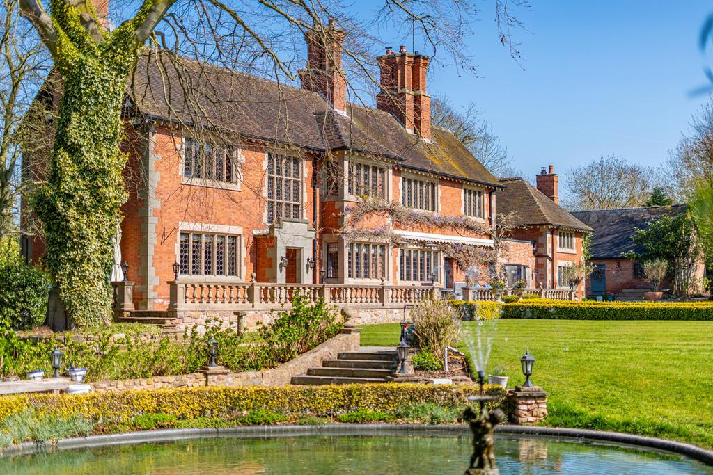 The grounds of Fauld Manor are an exceptional feature of this home. The property is nestled in the centre of 2.57 acres of grounds. There are two electrified gates which serve the property, and there is plenty of parking on offer via sweeping driveways and a turning circle to the front of the home plus an adjacent parking area where there is a triple garage block with a gym room over plus a further separate double garage.