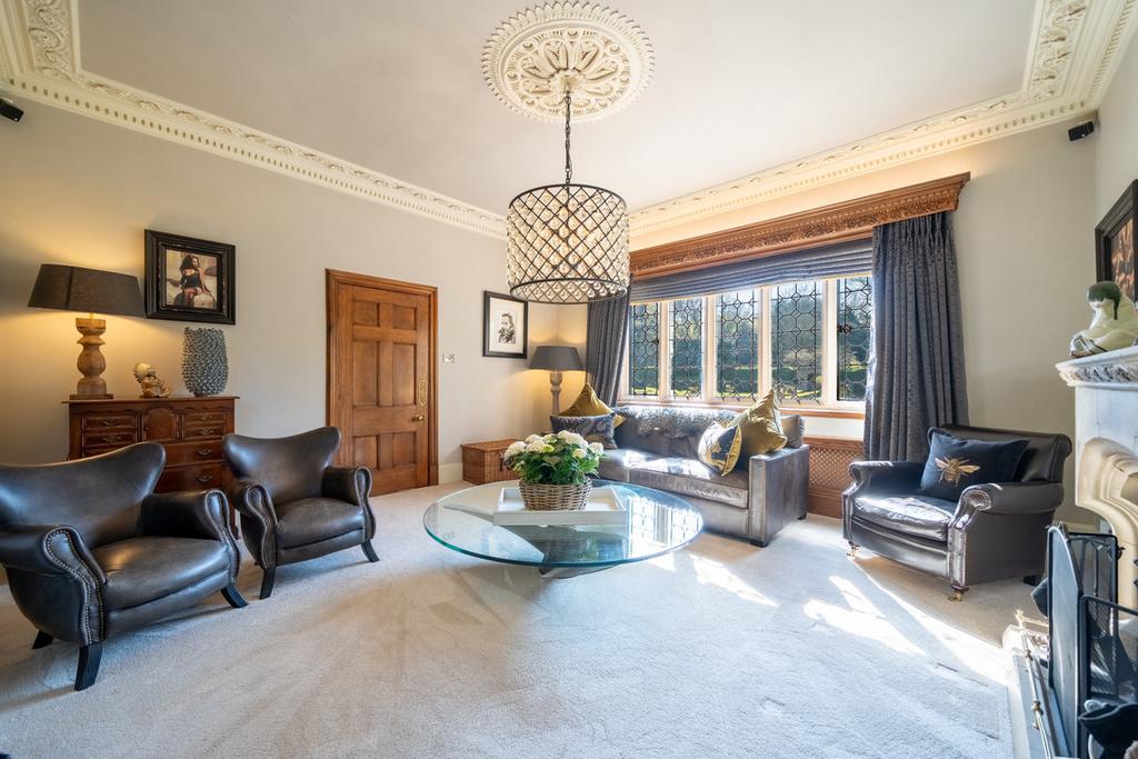 The principal lounge is a gorgeous room featuring period cornicing, a large stone fireplace and dual-aspect windows. There is then a further dining room, again with leaded windows overlooking the rear garden. This room further features a large stone open fireplace and feature cornicing.