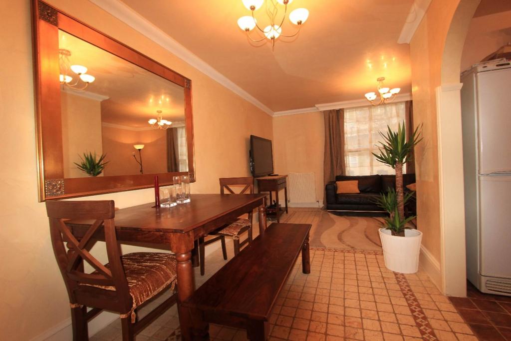The generous accommodation comprises a spacious reception and dining room, perfect for entertaining, alongside a separate fully tiled kitchen. The master bedroom benefits from a walk-in dressing room, which presents an excellent opportunity to be converted into an en-suite bathroom, while the second double bedroom offers ample proportions ideal for guests or family.