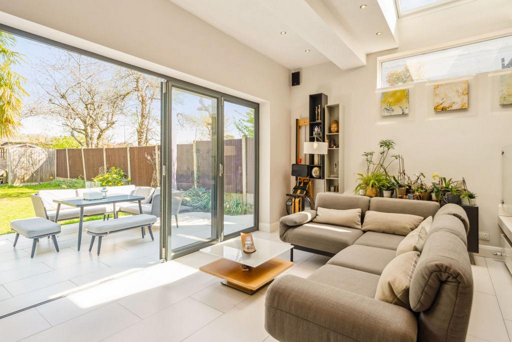 The heart of the house lies in the magnificent open-plan kitchen, dining, and family room. With a raised dining space perfect for Sunday roasts and birthday breakfasts, and bifold doors that peel back to reveal a 64ft garden—this space is made for connection. Picture summer evenings with kids running barefoot on the lawn, the scent of dinner in the air, laughter echoing from the family area. This is where life happens.