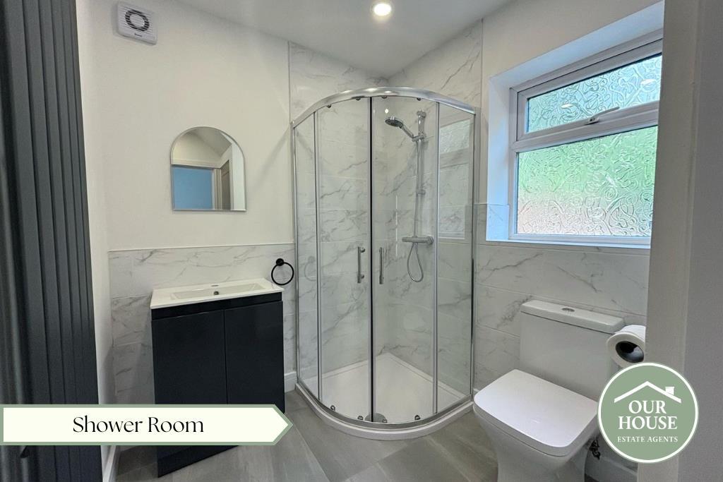 Shower Room - Window facing rear of property, W.C, hand wash basin with storage under, part tiled walls, extractor fan, radiator, step in shower, good sized storage cupboard and tiled floors.