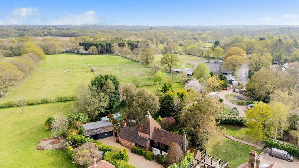 Welcome to The Oast House, a truly exceptional and characterful property set within approximately 2.7 acres of beautifully maintained grounds in the heart of the Surrey countryside. This impressive detached home offers a unique blend of heritage architecture and modern living, ideal for families, multi-generational living, or those seeking a peaceful rural lifestyle with space, privacy, and versatility.