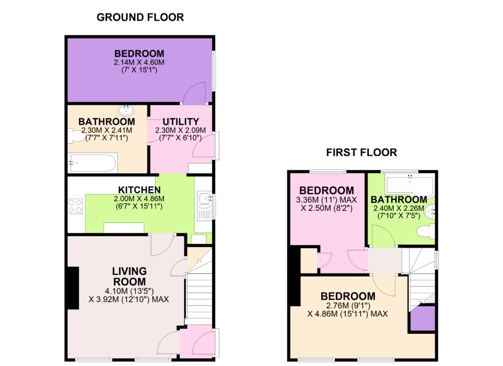 Two bathrooms - one conveniently located on the ground floor