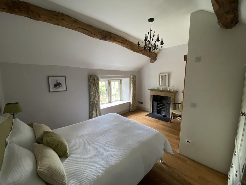 At the front of the cottage there is a lovely double bedroom which is very light and spacious, again complimented by lovely oak beams and a large front facing window offering views. At the rear is a further double bedroom which is a beautifully light room with period cast iron fire grate and stone surround, engineered oak flooring, vaulted ceiling with exposed purlins and a stone mullion window to the rear. This bedroom is equipped with an en suite having a tiled shower and glazed enclosure, vanity wash hand basin having base storage, tiled splashback, tiled flooring and heated towel rail.