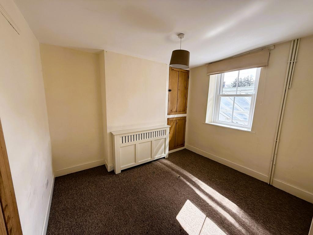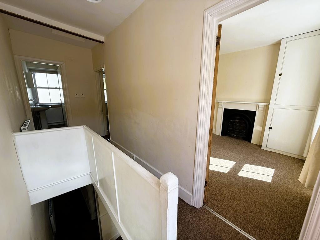 Double glazed sash window to rear, Victorian style cast fireplace, linen cupboards and radiator.