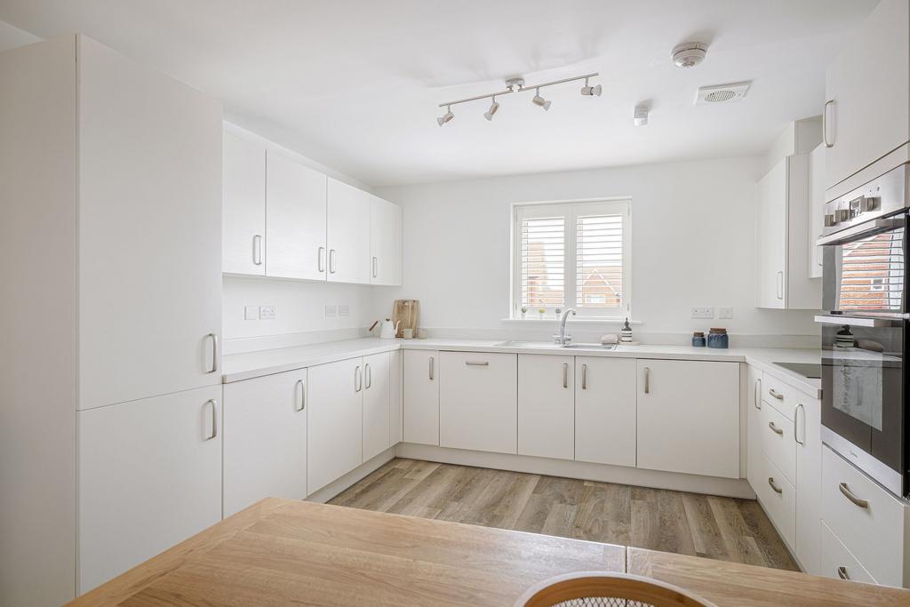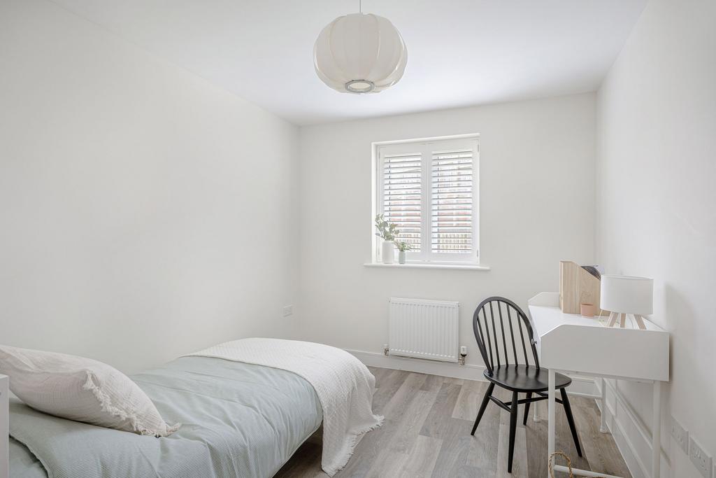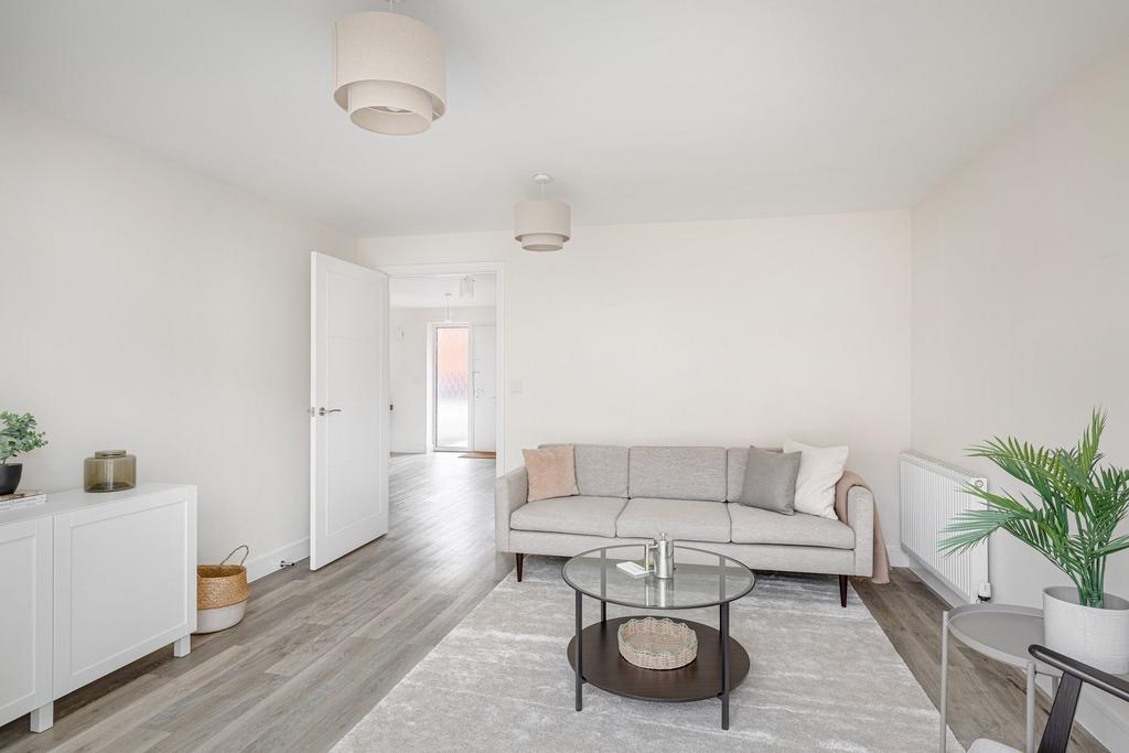 There are three generously sized bedrooms, all naturally bright. The principal bedroom includes a sleek en-suite shower room, while the other two bedrooms are served by a modern family bathroom.