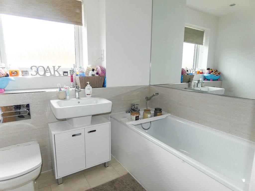 Fitted with a three piece suite comprising of hand wash basin, bath and low level w.c. Chrome heated towel rail, double glazed frosted window.