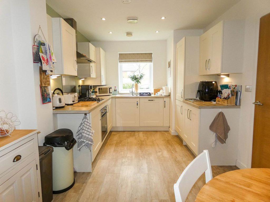 Fitted with a range of modern wall and base units with complementary work tops, incorporating a stainless steel sink and drainer with mixer tap. Electric oven with gas hob and extractor hood, integrated fridge/freezer, dishwasher and washer - dryer, double glazed window, central heating radiator.
