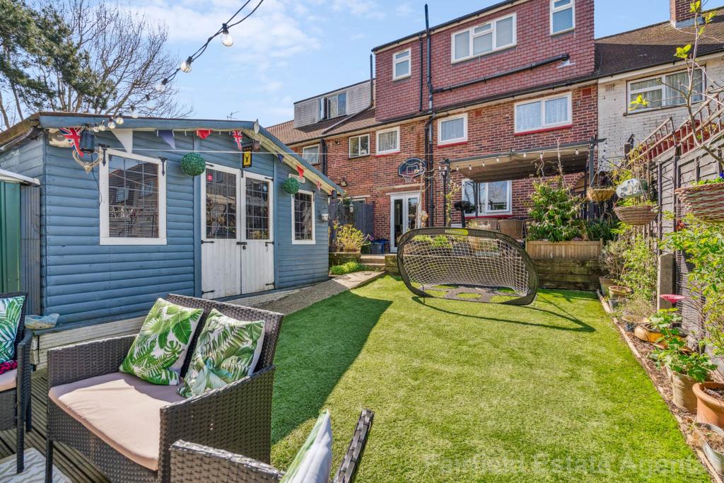 This spacious mid terrace property comprises of a welcoming entrance hall leading into a large family lounge and also the open plan kitchen/diner. French doors located in the kitchen/diner lead into the very nicely presented rear garden with an outbuilding and side access to the front. On the first floor there are 3 good sized bedrooms, modern family bathroom and stairs leading to the principle bedroom in the extended loft. On the top floor you will find the largest and most spacious of the 4 bedrooms and an en-suite bathroom.