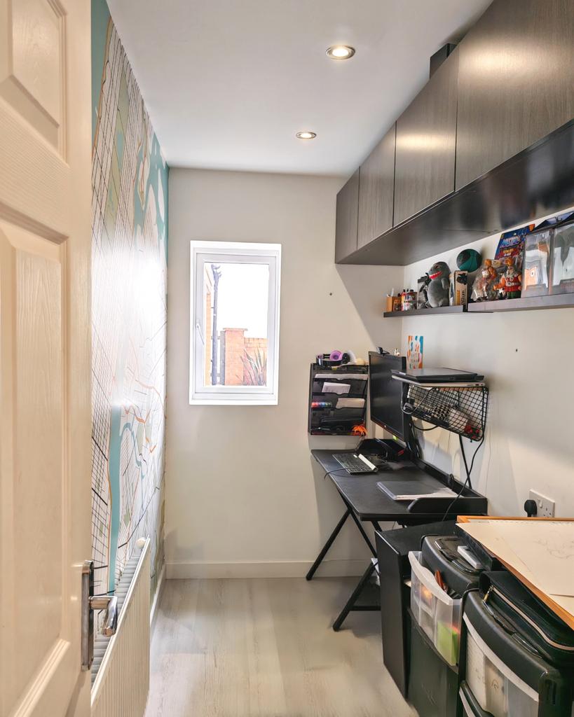 Situated in a peaceful neighbourhood, this house also features an office space perfect for remote working. Step outside to the large garden, ideal for entertaining friends and family in the warmer months. With front and back garden spaces, there is plenty of room for outdoor activities.