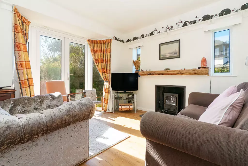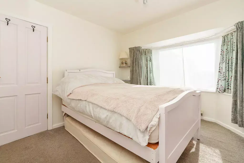The accommodation begins with an entrance porch leading into a welcoming reception hallway. There are two elegant reception rooms: a bright and spacious living room with a charming bay window and a separate sitting room with French doors opening onto the rear garden—ideal for relaxing or entertaining.