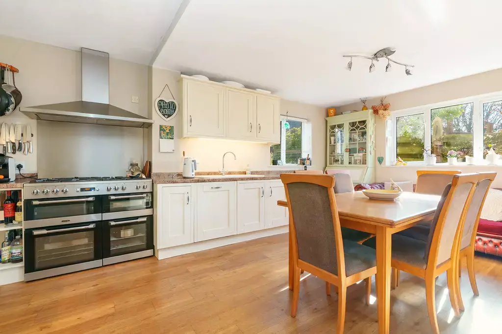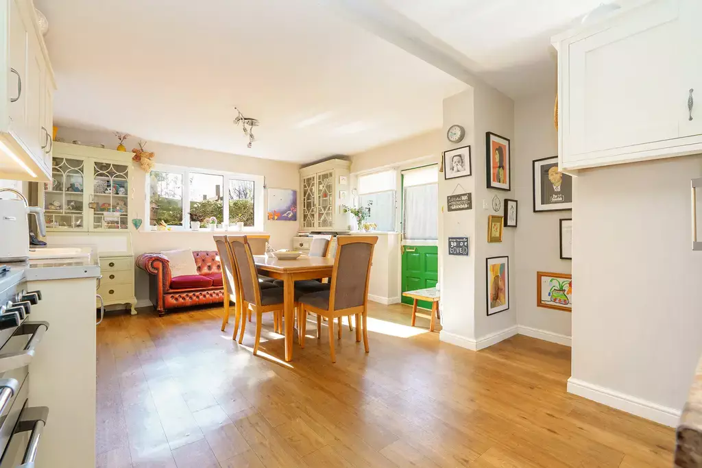The heart of the home is the generous dining kitchen, thoughtfully designed with modern fittings and ample space for family meals or social gatherings.