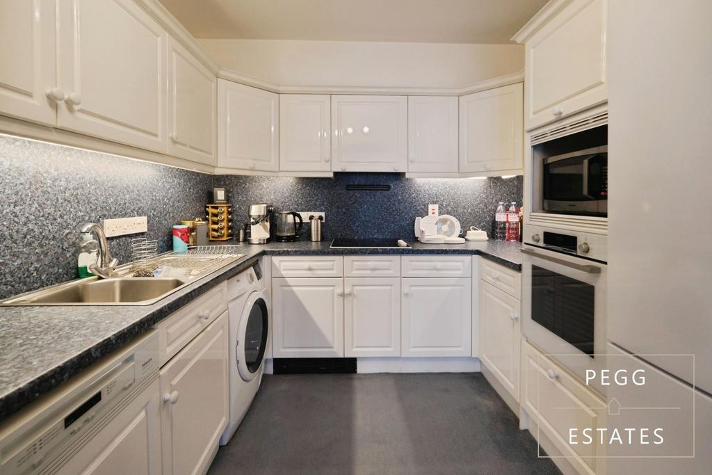 Kitchen has matching wall and base units, plumbing for washer/ dryer, stainless steel one and a half basin sink, plumbing for dishwasher, integrated electric Bosch oven, with electric induction hob and hidden extractor, space for fridge/ freezer.
