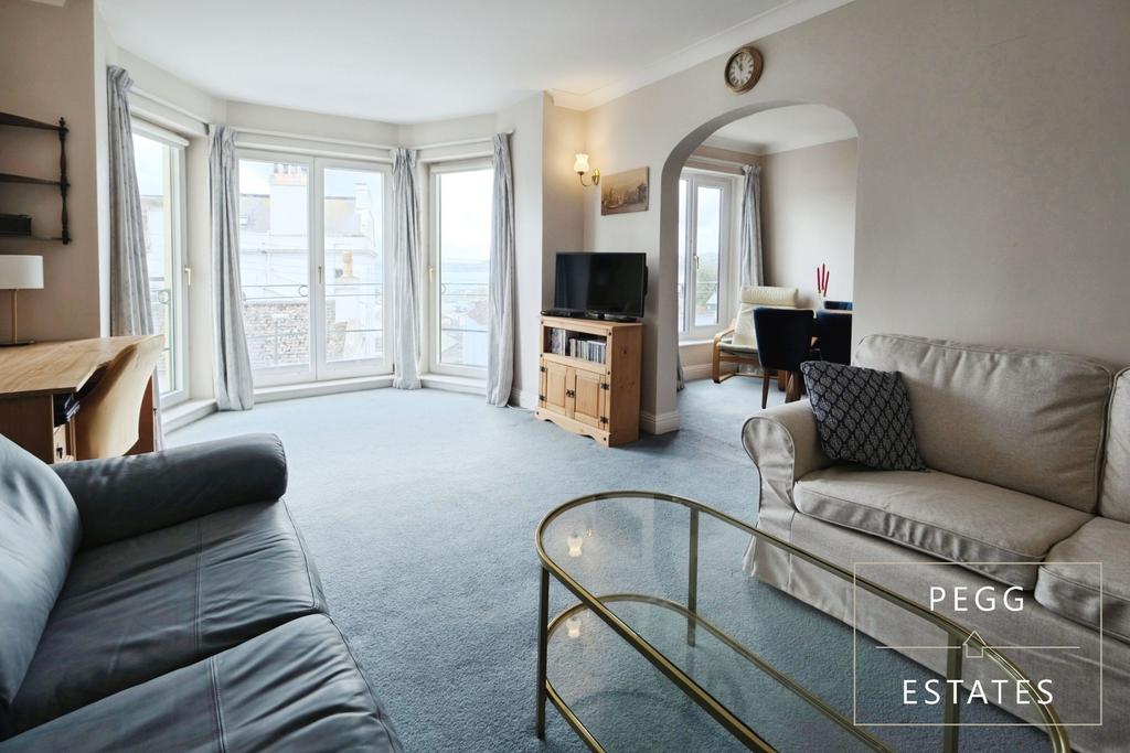 Carpeted throughout, double glazed Juliet bay style balcony opens out with views of the sea and Torquay harbour, TV point, electric points, storage heater to side .