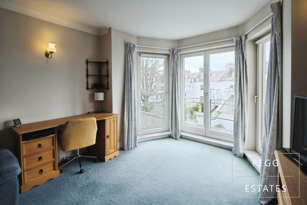 Carpeted throughout, double glazed doors/Juliet balcony with views over sea and harbour views, built in storage. (Could easily be converted back to a two bedroom if the archway was taken back to brick).
