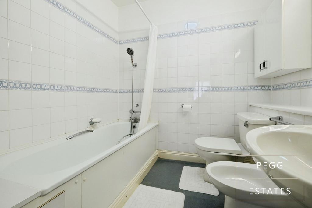 Carpeted throughout, matching white four piece suite to include panel bath, wall hung basin sink, low level wc, tiled throughout, built in storage cupboard, extractor.