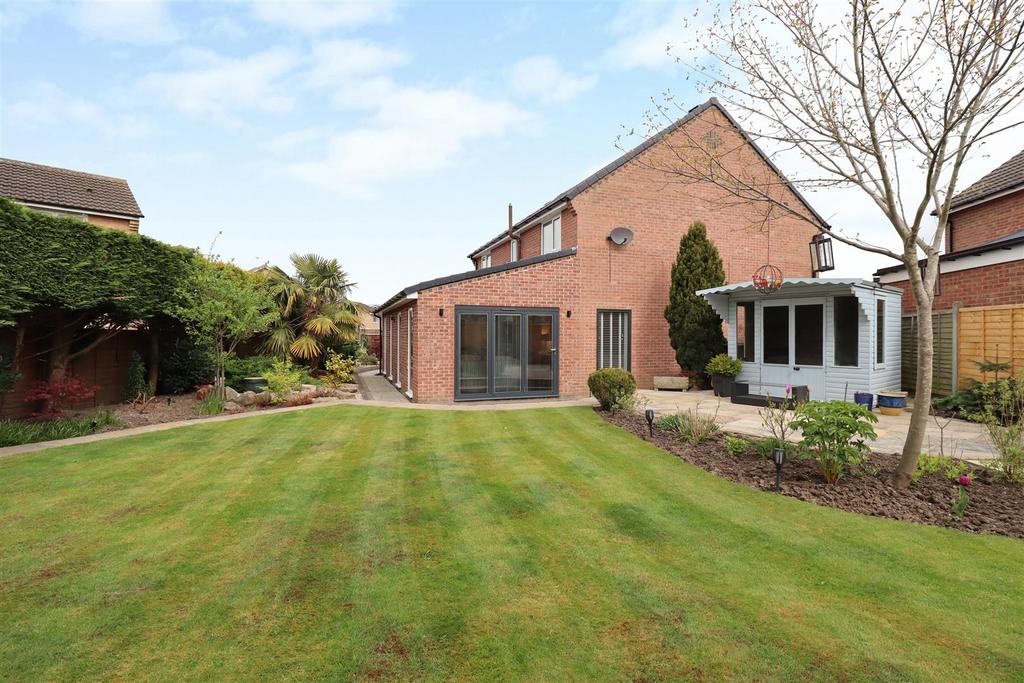 The exceptional standards continue outdoors, where beautifully landscaped gardens create a truly tranquil setting. Enjoy a generous paved patio perfect for entertaining, a summer house with power, and a practical garden shed - all enhanced by ambient dawn-to-dusk lighting. The mature trees offer both privacy and natural beauty, making the garden a true highlight of the property. A spacious driveway and alarmed double garage with electric doors provide ample parking and storage solutions.
