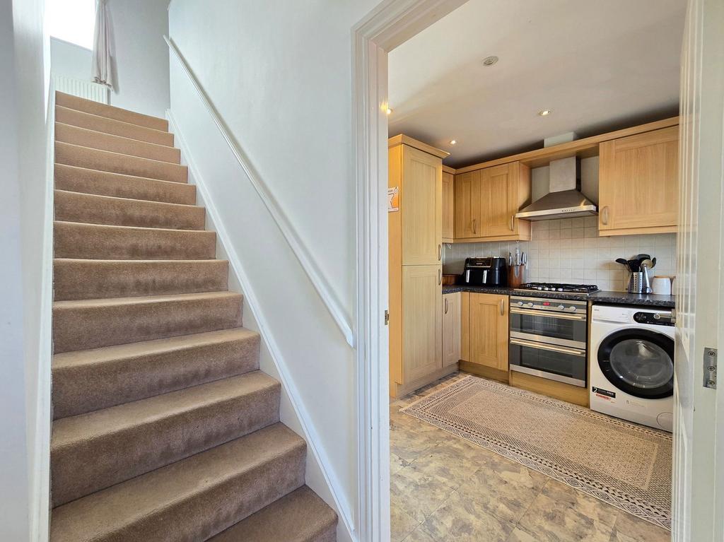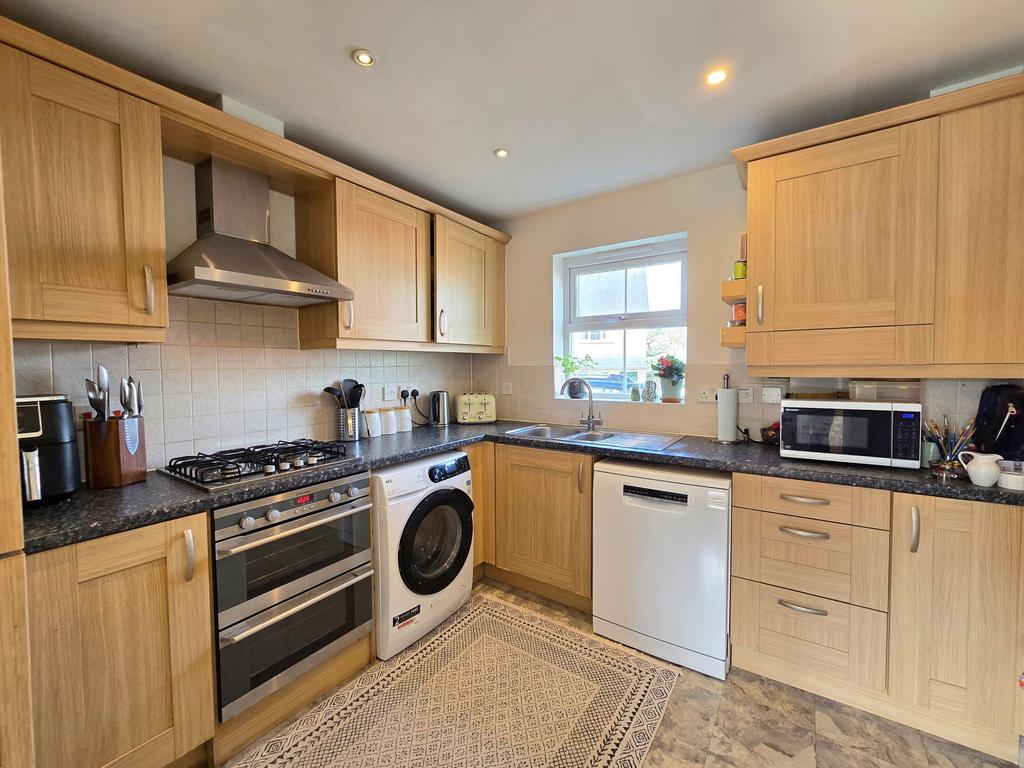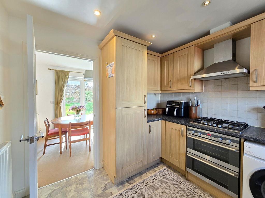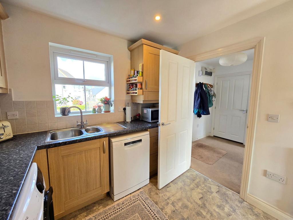 Situated in a quiet cul-de-sac on the edge of a busy village, this modern terrace house not only offers plenty of natural light throughout but also has far reaching views over Kit Hill from the front, and green fields and countryside at the rear. The ground floor is arranged in a circle allowing great flow between the rooms. The spacious living room is on the left as you enter and double doors from here give access to the dining room which has lovely french doors opening on to the south facing rear garden. A glass door leads on to the modern kitchen with great ‘washing up views’, and from here you are back to the hallway and that all important downstairs WC. Upstairs are two spacious double bedrooms, one with an en suite shower room, and a small double/large single, all serviced by a main bathroom. The whole property is in good order and offers potential to open up the ground floor if desired.