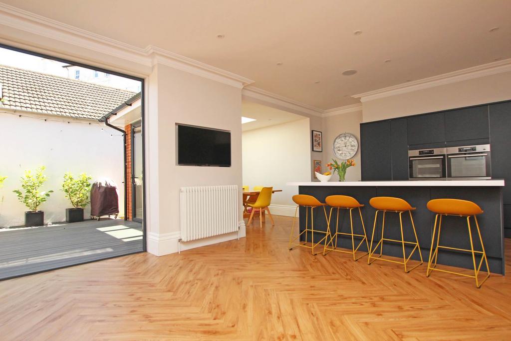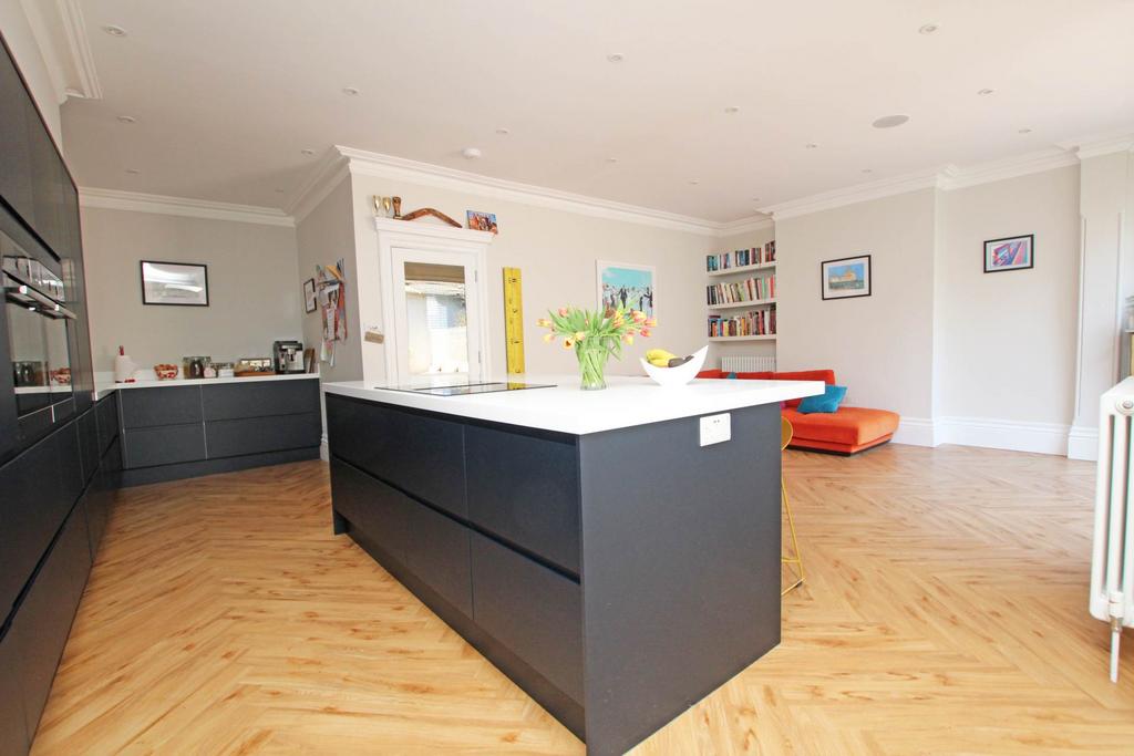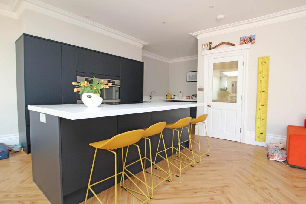 An outstanding six bedroom period family home located just yards from Eastbourne seafront, in Lower Meads which has been the subject of an extensive renovation by the current owners whilst retaining the period character and is presented to an exceptional standard. This stunning property enjoys accommodation arranged over 4 floors. On the ground floor there is a spacious entrance hall, sitting room with bay window and open fire and of particular note is the open plan kitchen/dining room/family room with comprehensive range of wall and base units complemented with solid Hanex work tops, range of high spec integral appliances, sink with Quooker instant boiling water tap, centre island with breakfast bar and bi-fold doors which really make the most of indoor/outdoor living. There is a ground floor wc on this level and stairs lead down to a basement level where there is a cinema room, office, laundry room and two convenient storage rooms. Stairs rise from the entrance hall to the first floor landing where there are three double bedrooms, with the principal bedroom suite boasting a stylish en-suite shower room/wc as well as a walk-in dressing area. A contemporary family bathroom is also found on this floor. Stairs then lead to the top floor landing where there are another three double bedrooms and a modern shower room/wc. There is a low maintenance rear garden with built in seating and a useful outside storage area to the side. The property enjoys stylish window shutters and built in bluetooth speakers throughout as well as gas central heating and double glazing. An internal viewing is highly recommended to appreciate the many merits this wonderful property has to offer.