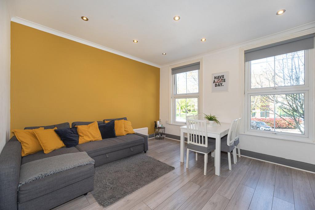 The flat enjoys dual aspects, with windows facing both the quiet Home Road and the rear garden, allowing for plenty of natural light throughout.