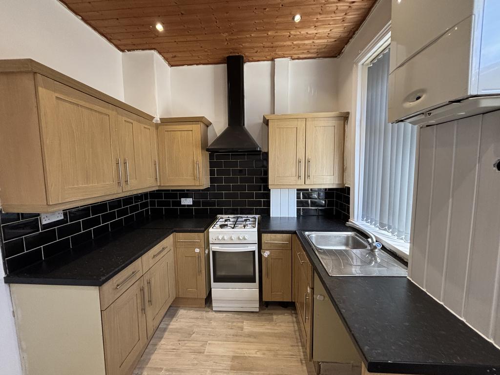 Kitchen (10'0 x 8'0) Fitted base and wall units, stainless steel sink unit with mixer taps gas cooker and hood. Double glazed window, staircase to the first floor, door to rear yard and access to storage cellar.